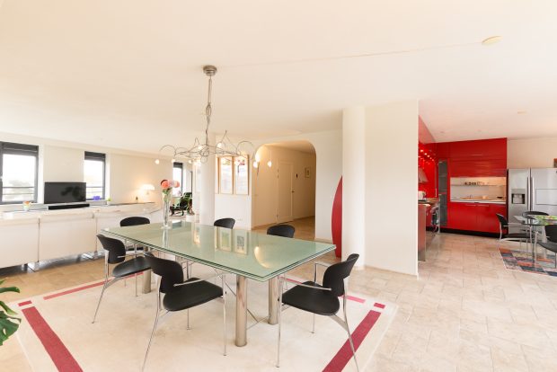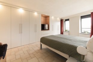 The semi-open, semi-professional Foster kitchen – equipped with a characterful Smeg stove – is directly connected to the spacious living room. This attractive living room offers various seating areas and a bright dining room that transitions into the impressive “four seasons room”: a sunny, covered terrace that can be completely enclosed by glass panels. A delightful second living room with breathtaking views over the water.