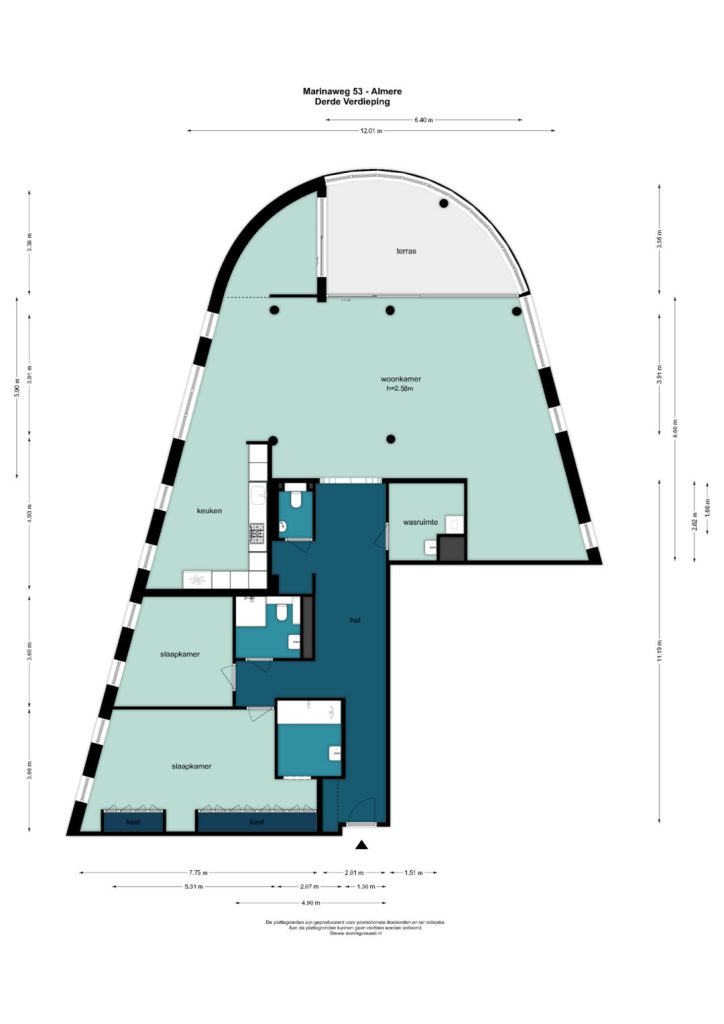 The Measurement Instruction is based on NEN2580. The Measurement Instruction is intended to apply a more unambiguous method of measurement to give an indication of the usable area. The Measurement Instruction does not completely rule out differences in measurement results, for example due to differences in interpretation, rounding off or limitations in performing the measurement. The surface area may therefore differ from comparable properties and/or old references. We emphasise that no rights can be derived from any difference between the stated and actual size. If the exact dimensions are important, we recommend measuring the dimensions yourself or having them measured.