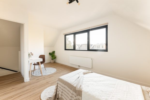 You enter the property through your private front garden. Upon entering, you are greeted by a stylish hallway with a neat toilet and the staircase leading to the upper floors. The through-living room is a true eye-catcher. Thanks to the smart extension at the rear, a beautiful, spacious dining area has been created. This seamless transition and the large windows provide an abundance of natural light and an optimal sense of space. The semi-open luxury kitchen is centrally located and directly connected to the living area. The dining room offers direct access to the sunny backyard of 56.1 m² through sliding doors. The well-maintained garden is a delightful outdoor space and features a brick external storage shed and a back entrance, perfect for extra storage or parking bicycles. At the front of the house, you’ll find a generous front garden of 55.5 m². Via the fixed staircase, you reach the first floor. Here, the central landing leads to two spacious bedrooms, a complete luxury bathroom, and a practical separate laundry room. The second floor offers two additional full-sized bedrooms, making this home ideal for a large family. Thanks to the smart layout and the presence of a dormer window, these are full-fledged rooms despite some areas with limited ceiling height. In short: a family home with 4 spacious bedrooms!