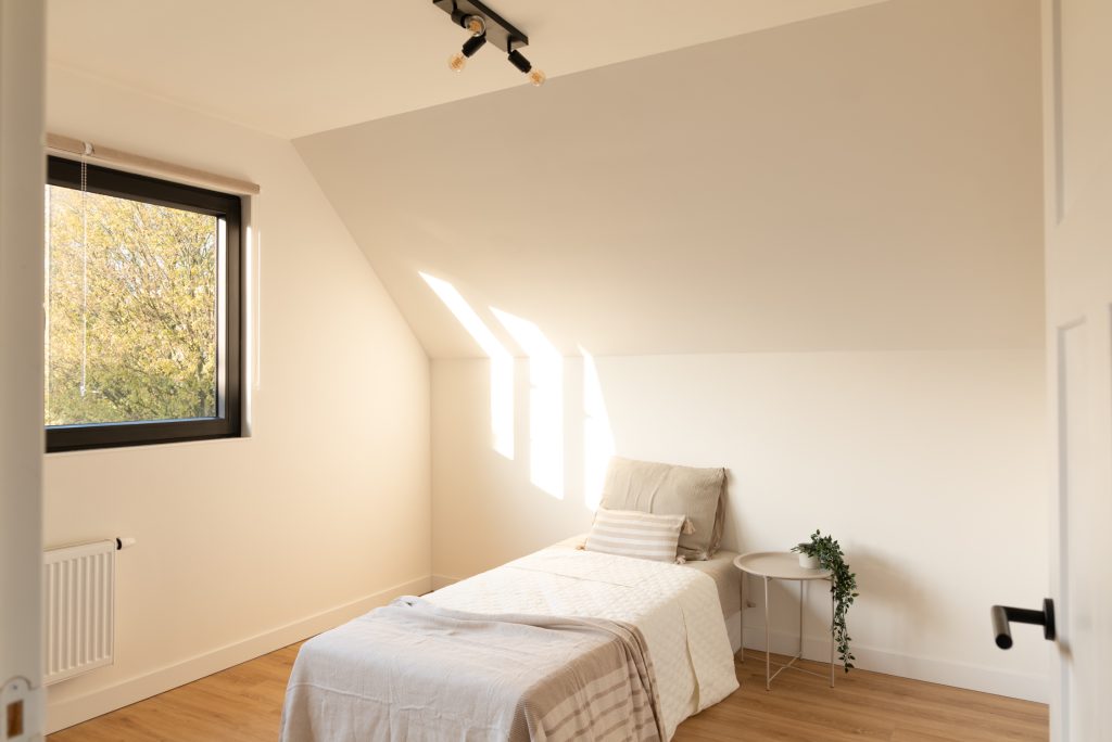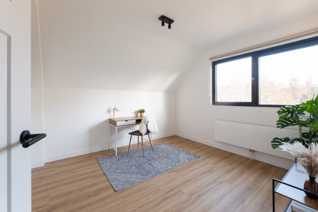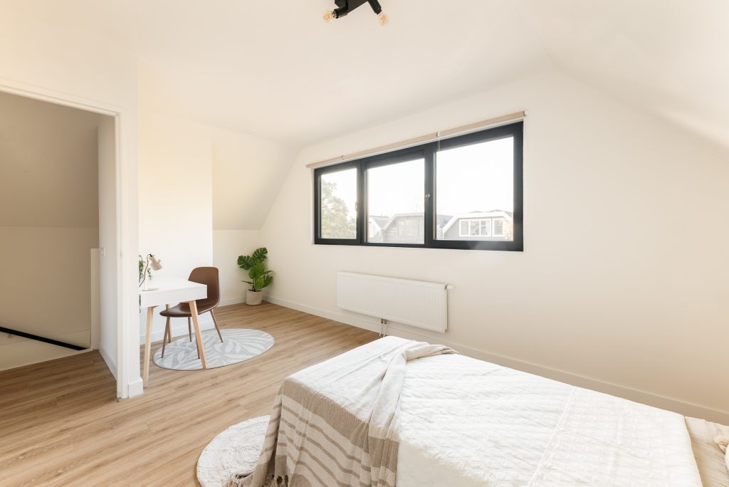 You enter the property through your private front garden. Upon entering, you are greeted by a stylish hallway with a neat toilet and the staircase leading to the upper floors. The through-living room is a true eye-catcher. Thanks to the smart extension at the rear, a beautiful, spacious dining area has been created. This seamless transition and the large windows provide an abundance of natural light and an optimal sense of space. The semi-open luxury kitchen is centrally located and directly connected to the living area. The dining room offers direct access to the sunny backyard of 56.1 m² through sliding doors. The well-maintained garden is a delightful outdoor space and features a brick external storage shed and a back entrance, perfect for extra storage or parking bicycles. At the front of the house, you’ll find a generous front garden of 55.5 m². Via the fixed staircase, you reach the first floor. Here, the central landing leads to two spacious bedrooms, a complete luxury bathroom, and a practical separate laundry room. The second floor offers two additional full-sized bedrooms, making this home ideal for a large family. Thanks to the smart layout and the presence of a dormer window, these are full-fledged rooms despite some areas with limited ceiling height. In short: a family home with 4 spacious bedrooms!