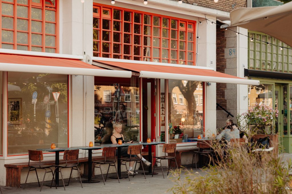 Public transport is excellent, with tram and bus stops right outside (e.g., tram 19 and bus 21 to Central Station). Sloterdijk Station is just five minutes by bike, and the A10 ring road is easily accessible by car.