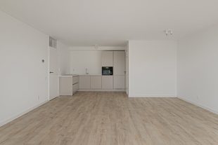 Through the central entrance with elevator, you reach the apartment on the fourth floor. The generous hallway leads to a bright living room with large windows and a modern open kitchen equipped with built-in appliances. From the living room, you step directly onto the south-facing balcony — perfect for morning coffee or evening drinks in the sun.
