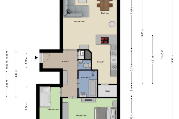 This property is measured according to the Measurement Instruction. The Measuring Instruction is based on NEN2580. The Measuring Instruction is intended to apply a more uniform way of measuring to give an indication of the usable area. The Measuring Instruction does not completely rule out differences in measurement results, for instance due to differences in interpretation, rounding off or limitations in carrying out the measurement. Although we have measured the property with great care, there may be differences in the measurements. Neither the seller nor the estate agent accepts any liability for these differences. The measurements are seen by us as purely indicative. If the exact measurements are important to you, we advise you to measure the dimensions yourself or have them measured.