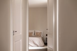 Entrance with bell plate, mailboxes, and atrium with characteristic staircase to the first floor. You can access all lower or higher floors via the elevator or stairs. The apartment is located on the second floor. Downstairs there is a parking garage where it is possible to rent a parking spot.