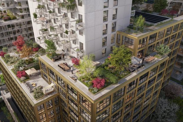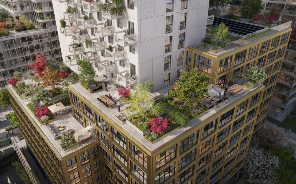 In addition to the private terrace in the apartment, there are exclusive green rooftops and roofterraces on the fifth, seventh, and ninth floors for residents.