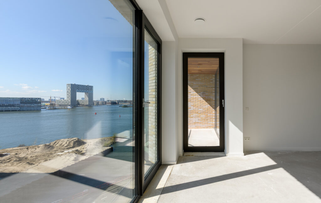 The buildings of THIS. feature modern and sleek architecture. Many apartments offer stunning views of the IJ. There is ample green space surrounding the buildings, including a “Hidden Garden” where you can relax and enjoy the sun and fresh air in peace. Each apartment also has its own outdoor space.