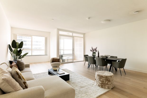 Luxury two-bedroom apartment (168 m²) with panoramic views in the iconic New Amsterdam building – including 24/7 concierge, Health Club with infinity pool and saunas.
