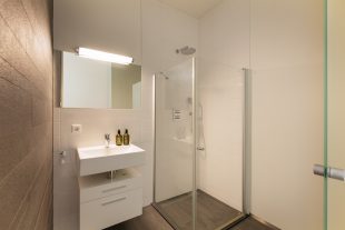 The apartment has two spacious bedrooms. The master bedroom includes an en suite bathroom with bathtub, walk-in shower, and double washbasin. The second bedroom has access to a second bathroom with shower and washbasin. On both sides of the apartment are loggias, ideal for enjoying the views all year round. In addition, there is a practical internal storage room with connections for a washing machine and dryer.