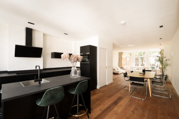 Centrally located in the Plantage neighbourhood, directly opposite the University of Amsterdam on Roeterseiland. Around the corner, you will find a wide range of cosy coffee shops, breakfast and lunch spots, and the Kriterion cinema. Artis Zoo and the Hortus Botanical Gardens are within walking distance, and there is an Albert Heijn supermarket less than a hundred metres away for your daily shopping.