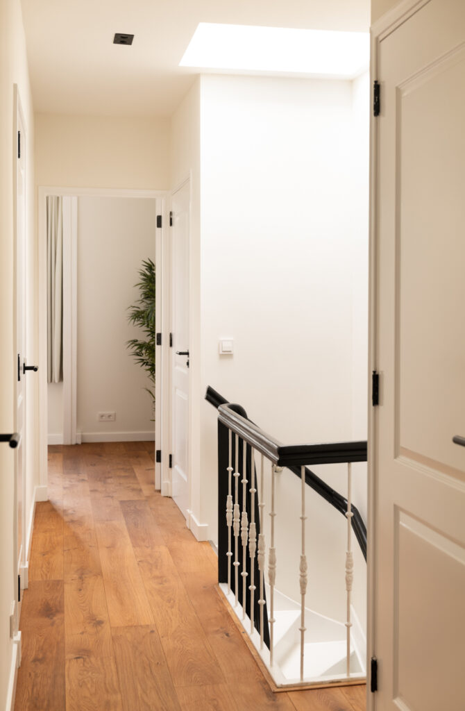 The flat is located on the third and fourth floors and has a nice view of Roetersstraat through the many windows at the front. The property is 102 m2 and spread over the two upper floors. On the third floor is the spacious living room with three windows at the front and a nice view of Roetersstraat. The modern and spacious kitchen is located at the rear of the property. On the top floor are 3 good bedrooms, the bathroom and a separate toilet. The luxurious bathroom has a spacious walk-in shower, a double sink and a towel radiator. Everything is in neutral colours and spacious. There is also a separate laundry room and a room for the central heating boiler.
