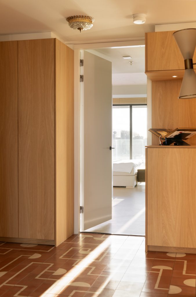 The spacious and light living room with wooden ceilings and impressive large windows is a pleasant private oasis with plenty of daylight and panoramic views over the water of the Amstel. A place to relax, receive guests, and spend cozy evenings with the lights of the surrounding architecture in the background. The open kitchen exudes class with the use of high-quality materials and is equipped with advanced appliances, including an induction cooker with integrated exhaust system, a dishwasher, combination oven, refrigerator-freezer combination, and a Quooker. The kitchen island forms the heart of this stylish space, while a spacious dining table completes the living area. The living space also provides access to the lovely balcony on the west, inviting relaxation and enjoyment of the free outdoor life. There is a spacious seating area, a free view of the surroundings, and the gently flowing water below. The apartment has three bedrooms and two bathrooms. The master bedroom provides an ultimate feeling of comfort with the adjacent bathroom and a spacious laundry room/wardrobe. The luxurious and spacious bedroom is equipped with plenty of natural light and has access to the balcony. The en-suite bathroom is equipped with a bathtub, shower, toilet, and a modern furniture. The cozy atmosphere matches the allure and luxurious finishing of the apartment, which has been seamlessly continued in all rooms. Also in the other two bedrooms and the second bathroom, which is executed in the same materials.
