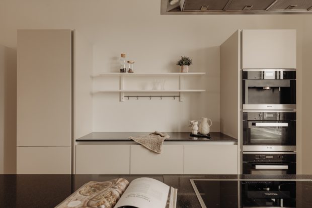 Entrance, spacious living room with balcony, spacious living kitchen where a large table can stand. The kitchen is from Poggenpohl with Miele appliances where all the comforts are thought of.