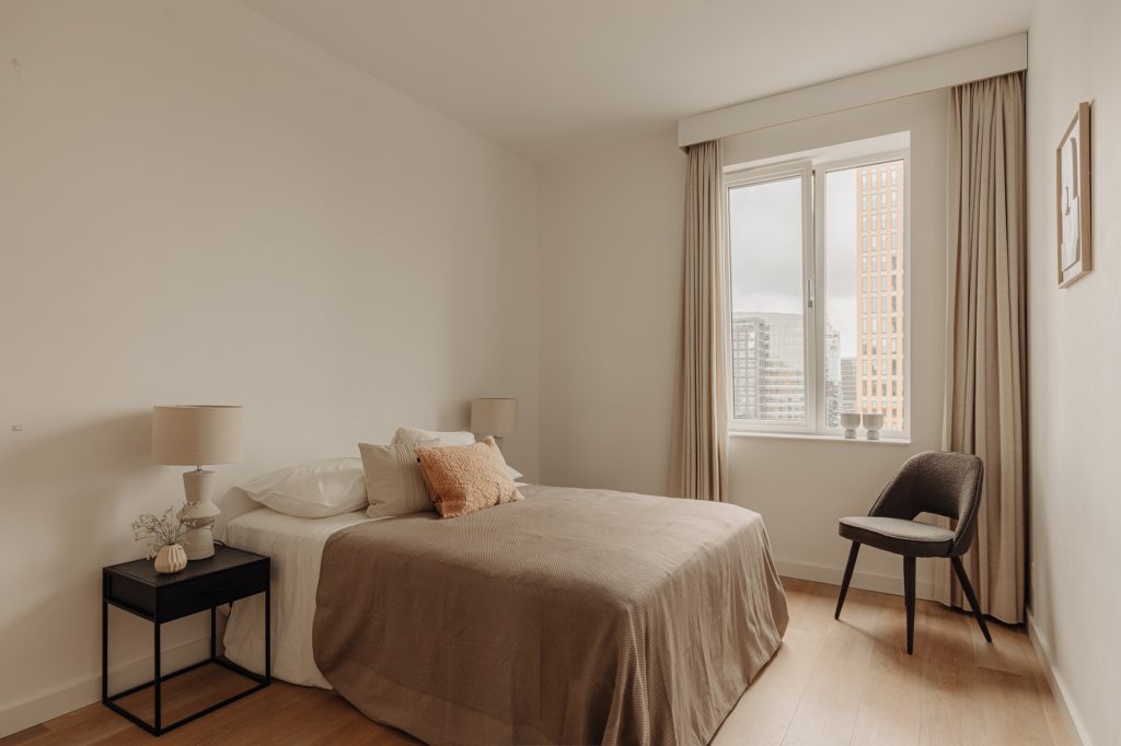 The luxury apartment is located on Gustav Mahlerlaan on the popular Zuidas. The Zuidas is in full development. Not only in terms of living. So you can start the day with a Rocycle/spinning class or Personal Training at the Gustav Gym and you can have breakfast at The Breakfast Club. Within walking distance you will find many and very diverse restaurants. There is also an Albert Heijn under Intermezzo where you can get your daily groceries. The Zuidas is a short distance from the Gelderlandplein shopping center.