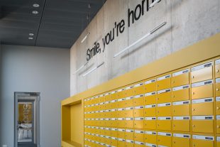 Through the shared entrance on the ground floor, you have access to the stairwell and the lifts that take you to the ninth floor. Here, there are eight apartments, including Meerluchtlaan 136.