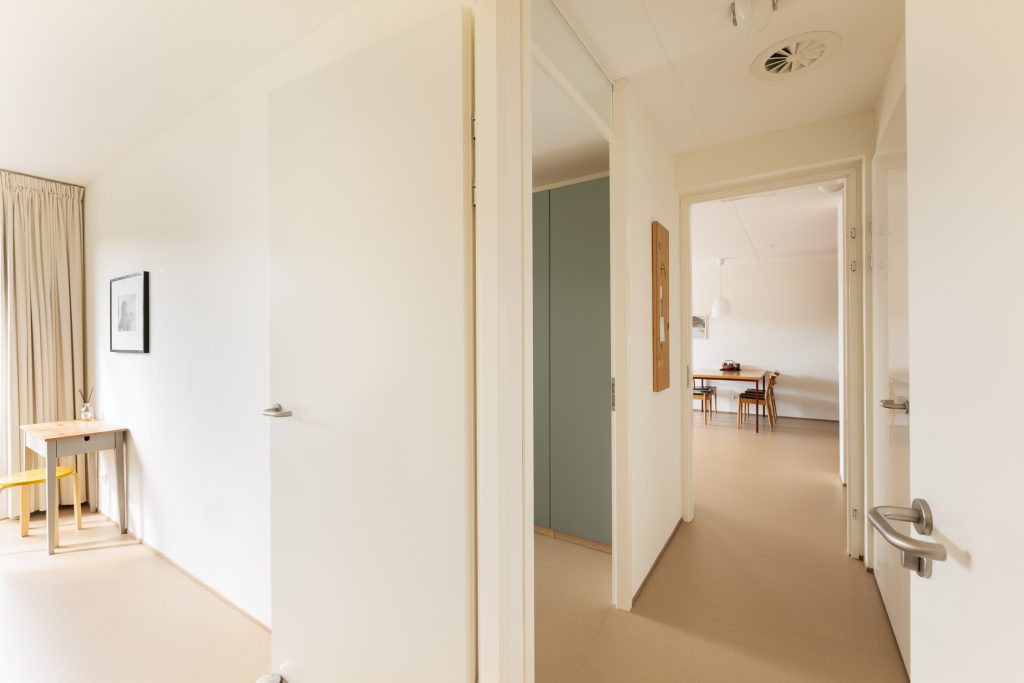 The entrance on the ground floor is equipped with a Bringme Box, allowing residents to easily receive and send packages. Via the elevator, you reach this bright and comfortable apartment with a thoughtful layout. Upon entering, the spaciousness is immediately noticeable: a pleasant balance between openness and privacy, with two well-sized bedrooms that are also ideal for a work-from-home setup.