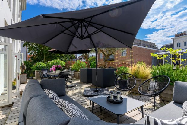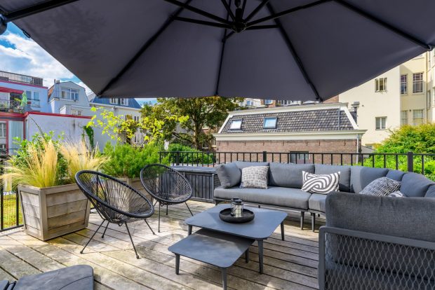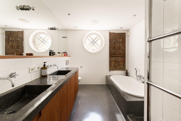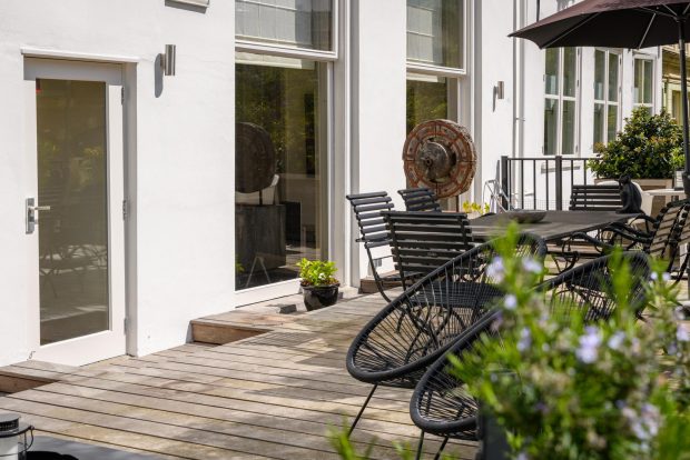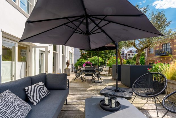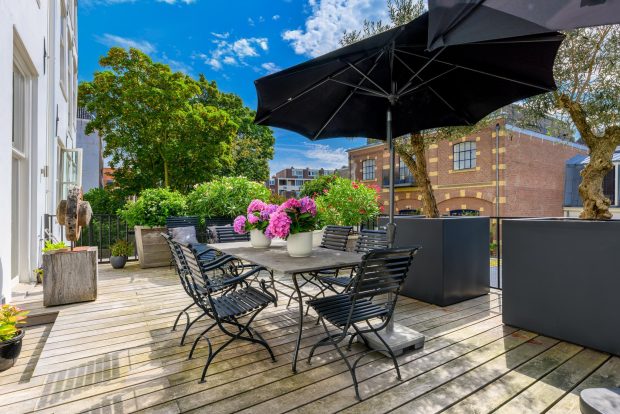 The 58 m² roof garden is a special and rare feature for a home in the heart of the city. From the kitchen you step directly into this inviting outdoor space, perfect for lounging, dining or relaxing during long spring days and balmy summer evenings. Because the terrace faces south, you enjoy sunlight all day long, from early morning to late afternoon. Mature olive trees and large flower boxes give the garden a Mediterranean look. Thanks to its sheltered location, you have complete privacy and do not notice the hustle and bustle of the Prins Hendrikkade.