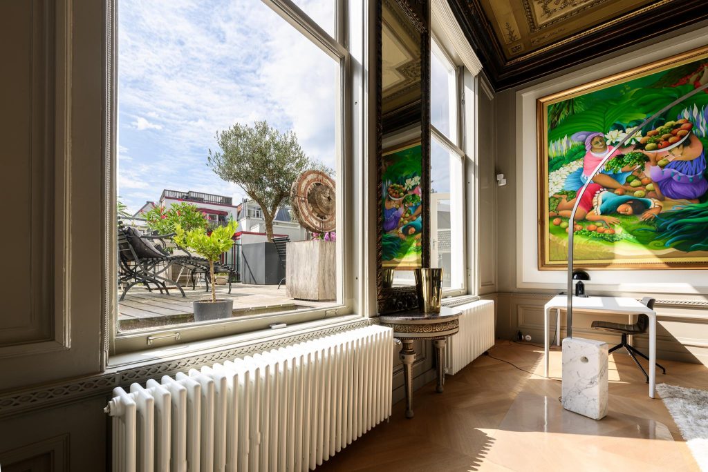 For sale: a beautifully stylish apartment of over 200 m², with a sunny south-facing roof garden and two private parking spaces, located in a prime historic location in the heart of Amsterdam. Located in an eighteenth-century National Monument, this exceptional apartment offers a perfect combination of historic charm, international allure and modern luxury. From the spacious kitchen to the stylish living room with original murals and a marble fireplace, every detail exudes quality and atmosphere. A special home for those who enjoy living in style.