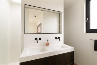 On the first floor, you’ll find two generously sized bedrooms and a comfortable TV room, which can easily be converted into an extra bedroom or home office. This level also includes a stylish bathroom with bathtub, shower, and vanity unit, a separate toilet, and a practical built-in closet with connections for a washer and dryer.