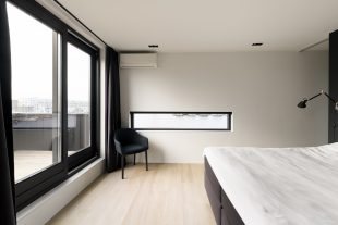 The top floor is designed as a private retreat. Here you’ll find the spacious master bedroom with walk-in closet, an ensuite bathroom with shower, toilet, and vanity unit, and access to a sunny rooftop terrace with unobstructed views. A separate storage room completes this level.