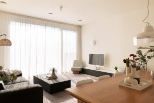 This highly finished apartment is located in a state-of-the-art residential complex and is equipped with many modern conveniences including a system with which the climate and light can be controlled. The balanced ventilation (climate) can be set as desired by remote control. The underfloor heating/cooling and light can be controlled manually. The apartment has a spacious bright living room with a modern open kitchen, two spacious bedrooms, two bathrooms, technical room and separate toilet. The entire apartment is on the ground floor and has a cast floor, making it also very suitable for the disabled.