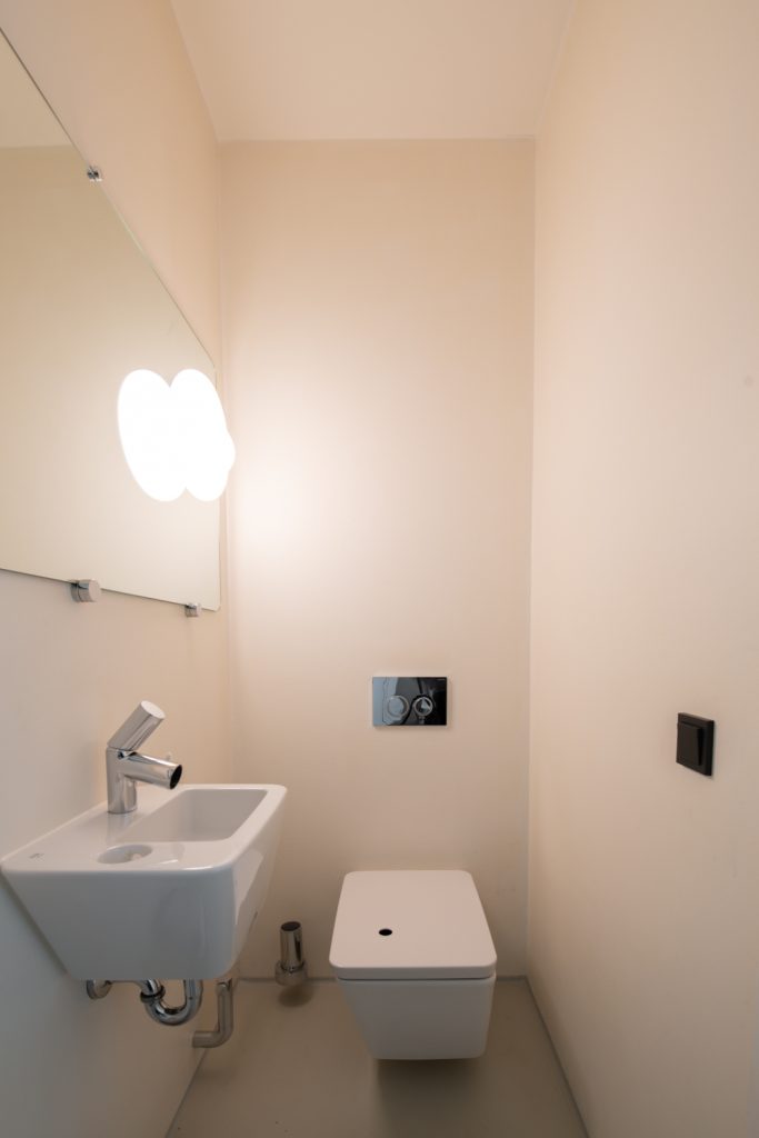 Fourth floor: entrance central to the apartment. Bright living room with beautiful cast floor and large windows immediately give an oasis of calm. The luxurious and modern open Valcucine (Corian) kitchen equipped with Alessi design by architect Wiel Arets. The kitchen features an induction hob, dishwasher, fridge/freezer, and combination microwave/oven. All appliances are from Miele. From the hall access to both bedrooms, bathroom and separate toilet and utility room with connections for washer / dryer. Both bedrooms are of good size and have fitted wardrobes. The luxurious designer bathroom is equipped with a bathtub, shower and washbasin. All sanitary ware is by Alessi dOt.it and designed by Wiel Arets. Products are produced by quality brand Laufen (ceramic sanitaryware, accessories). Both the bathrooms and the toilet, hallway and corridor in the apartment are equipped with wall light fixtures from the Alessi dOt.it line. The luxury designer bathroom(s) are equipped with a bathtub, shower and sink cabinet.
