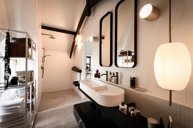 The first floor has an impressive ridge height of 3.60 meters and offers a loft-like space of 70 m², with the possibility of additional rooms. The imposing rafters are placed back in sight, which give a special atmosphere.