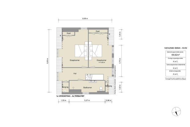 This house is measured according to the Measuring Instruction. The measurement instruction is based on the NEN2580. The Measuring instruction is intended to apply a more uniform way of measuring to give an indication of the usable area. The Measuring Instruction does not completely rule out differences in measurement results, for instance due to differences in interpretation, rounding off or limitations in carrying out the measurement. Although we have measured the house with great care, there may be differences in the measurements. Neither the seller nor the estate agent accepts any liability for these differences. The measurements are seen by us as purely indicative. If the exact dimensions are important to you, we recommend that you measure the dimensions yourself or have them measured.