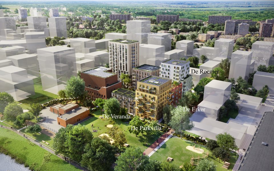 Zodra je de wijk in fietst maakt het geluid van ronkende auto’s plaats voor fluitende vogels. Geniet in het zonnetje in het park uitkijkend over het water, waar plezierbootjes en kanoërs langsvaren. Of met een drankje op één van de terrassen vlakbij. Onderweg naar je herenhuis of appartement ontmoet je je buren in een groene binnentuin of op een gezellig plein, haal je je kinderen van school of loop je een rondje langs het groene dwaalspoor, het hart van de wijk.