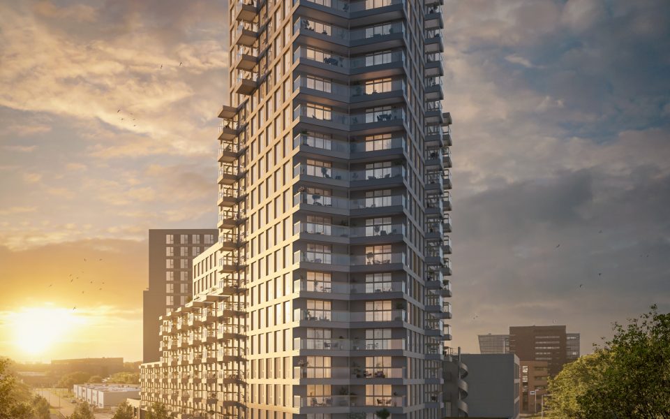 Dialogue, comfortabel wonen binnen de ring van Amsterdam. Het gebouw markeert de introductie van een nieuwe, aantrekkelijke stadswijk, de volgende bruisende hub van Amsterdam Duivendrecht, gelegen in Overamstel.