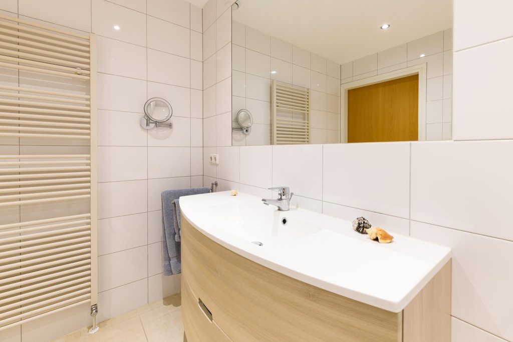 Via de smaakvolle entree kom je bij het appartement: De ruime hal met garderobe en gastentoilet geeft direct toegang tot de grote en lichte woonkamer met een fijne werk annex tv hoek. De grote woonkeuken, voorheen keuken en studeerkamer, ligt direct aan het terras en biedt een fraai uitzicht op het IJmeer met in de verte het eiland Pampus en Amsterdam,de tuin, en het privé strand en het. Het terras biedt plaats aan een grote eettafel en ligstoelen om vanaf de ochtend tot zonsondergang van de zon en de ongekende zonsondergangen te genieten. Via de hal heb je toegang tot de 2 ruime slaapkamers en de badkamer voorzien van ruime inloopdouche en 2e toilet. De badkamer bestond oorspronkelijk uit twee kleinere badkamers. Naast de badkamer is een ruime laundry.