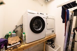 Op -1 niveau de royale berging en de parkeergarage met twee naast elkaar liggende parkeerplaatsen en de fietsen berging.