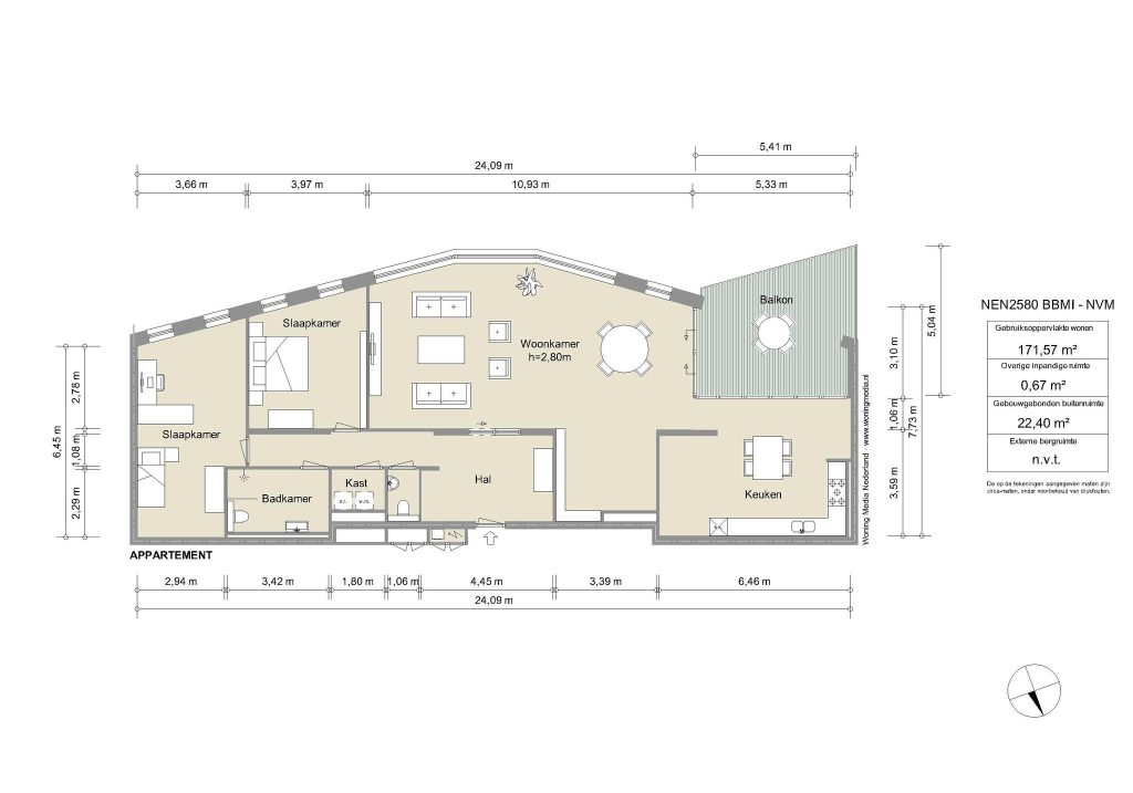 Deze woning is gemeten volgens de Meetinstructie. De Meetinstructie is gebaseerd op de NEN2580. De Meetinstructie is bedoeld om een meer eenduidige manier van meten toe te passen voor het geven van een indicatie van de gebruiksoppervlakte. De Meetinstructie sluit verschillen in meetuitkomsten niet volledig uit, door bijvoorbeeld interpretatieverschillen, afrondingen of beperkingen bij het uitvoeren van de meting. Hoewel wij de woning met veel zorg hebben opgemeten kan het zijn dat er verschillen zijn in de afmetingen. Noch verkoper noch de makelaar accepteert enige aansprakelijkheid voor deze verschillen. De maatvoeringen worden door ons gezien als zuiver indicatief. Indien de exacte maatvoering voor u van belang is, raden wij u aan de maten zelf te (laten) meten.