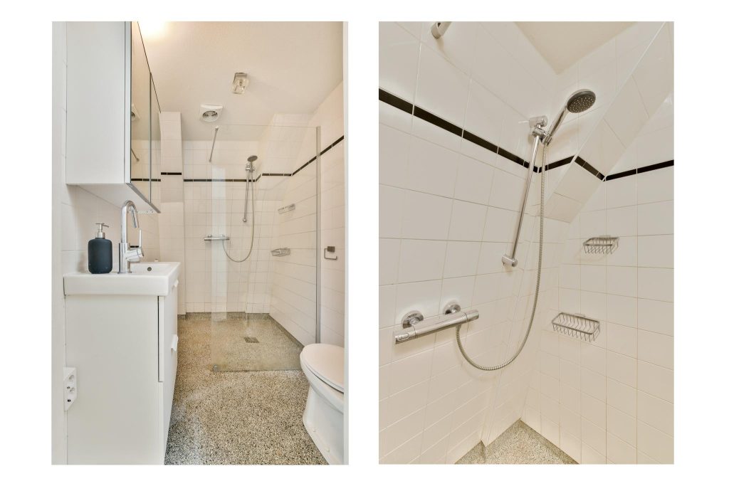 De overloop van de vierde etage is opvallend licht door de aangebrachte lichtkoepel. De badkamer, geplaatst tussen de twee slaapkamers, is een frisse ruimte met een inloopdouche, toilet, wastafel en een karakteristieke granitovloer. De slaapkamer aan de achterzijde is ingericht als tweepersoonskamer en heeft veel karakter door de zichtbare balken nok met een hoogte van bijna 3,5 meter. Deze is ook zichtbaar in de slaapkamer aan de voorzijde. Hier zorgt een vaste kast voor veel opbergruimte. In de hal is tevens een ruime bergkast met onder andere de wasmachineaansluiting gecreëerd.