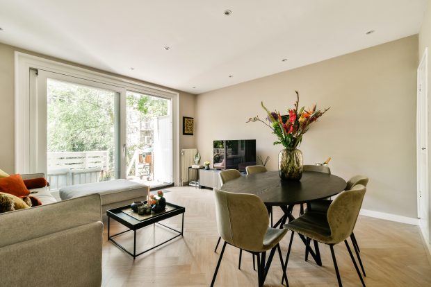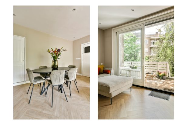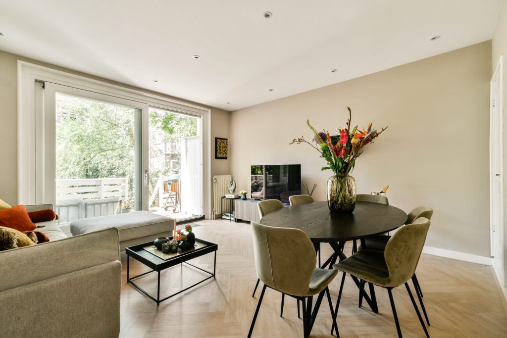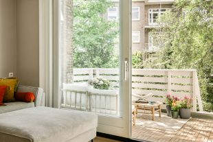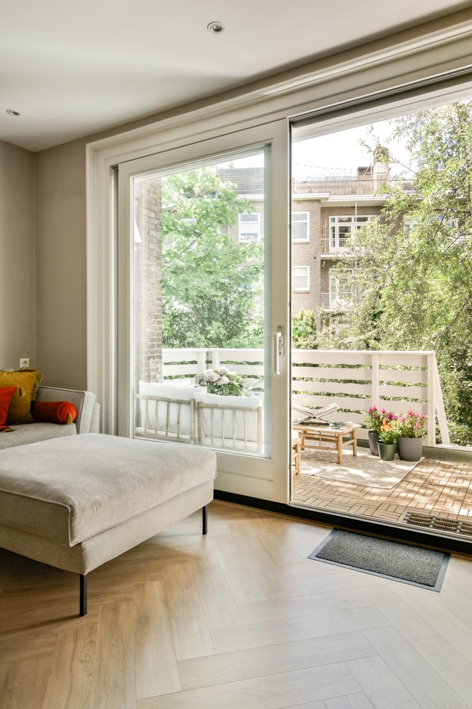De woonkamer is aan de achterzijde gelegen met toegang tot het balkon middels een schuifpui. Hier kan je heerlijk zitten in de avondzon.