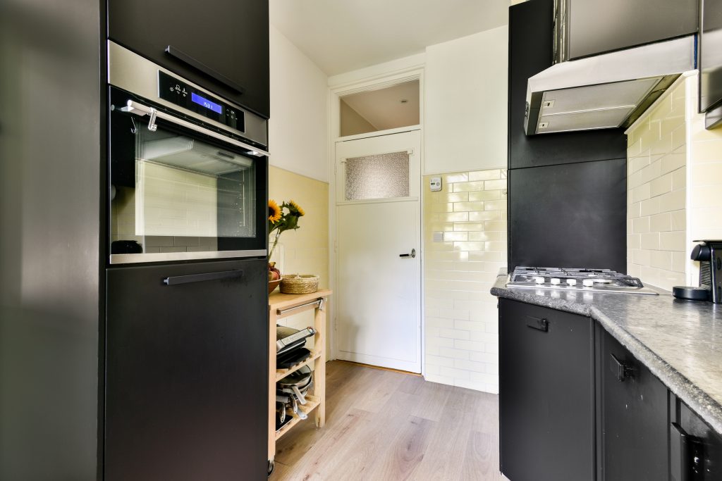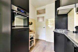 De keuken is aan de achterzijde gelegen en beschikt over een 4-pits gasfornuis met afzuigkap, vaatwasser en koelkast met vriesvak. Ook de keuken biedt toegang tot het zonnige balkon.