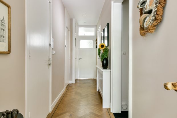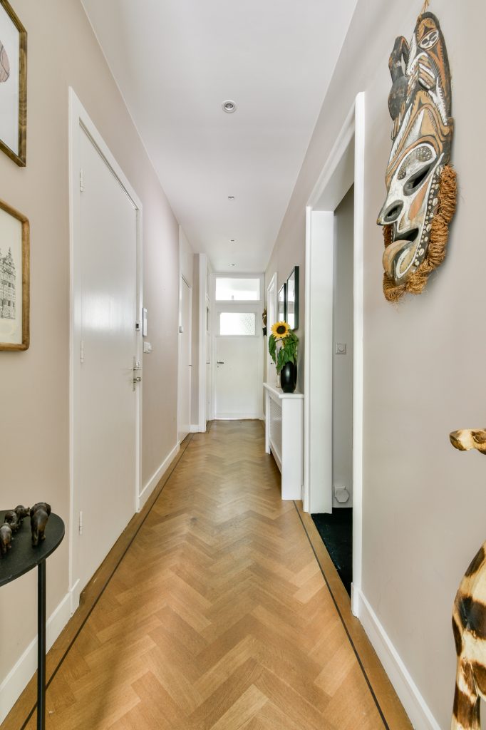 Hal die toegang biedt tot woonkamer, de slaapkamers, het separate toilet, de badkamer en de keuken.