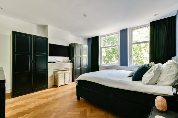 Aan de voorzijde van het pand is de ruime slaapkamer die voorzien van eikenhouten visgraatparketvloer en een schouw. Ook is er aan de voorzijde een kleinere slaapkamer/werkkamer.