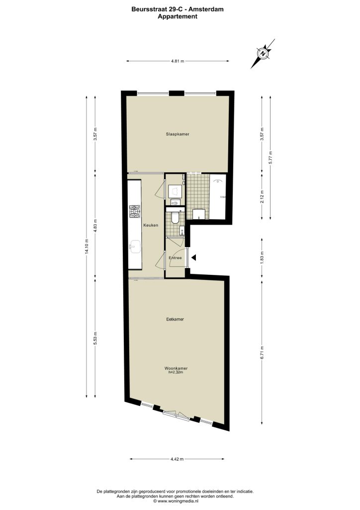 Deze informatie is met zorg samengesteld door Eefje Voogd Makelaardij b.v. We kunnen echter niet aansprakelijk gesteld worden voor eventuele onvolledigheden of fouten. De Meetinstructie, die is gebaseerd op NEN2580, geeft een duidelijke manier om de gebruiksoppervlakte te meten. Het kan zijn dat meetresultaten verschillen, waardoor de oppervlakte anders kan zijn dan bij vergelijkbare objecten. Je kunt geen rechten ontlenen aan de verschillen tussen de opgegeven en de werkelijke grootte. Voor een nauwkeurige maatvoering raden wij aan om zelf te (laten) meten