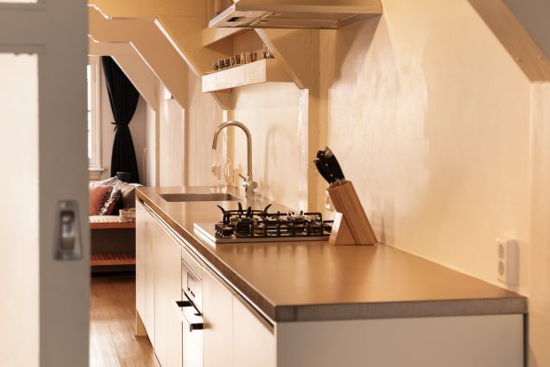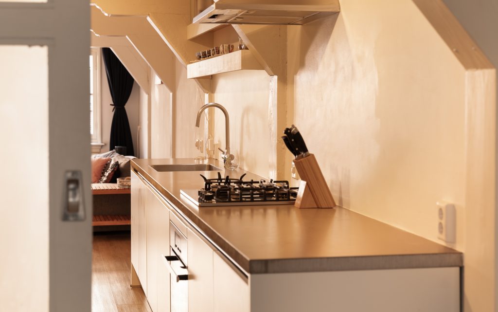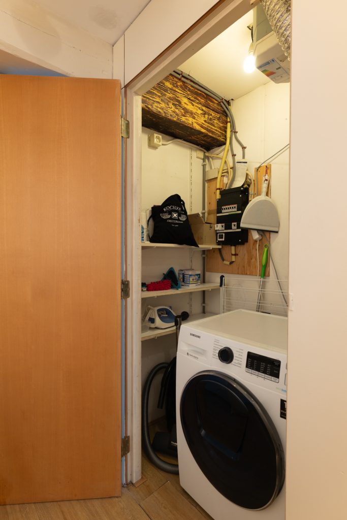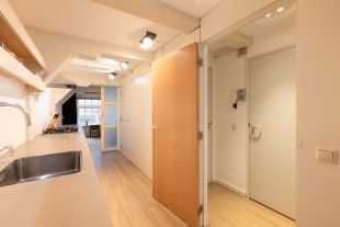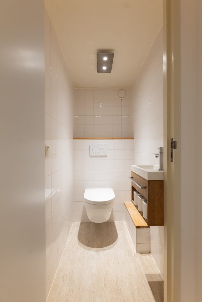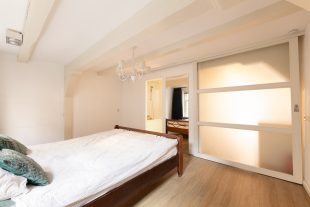Centraal gelegen in de woning is de knusse keuken en vanuit hier loop je naar de zeer riante slaapkamer aan de achterzijde van het pand gelegen. De slaapkamer is groot genoeg voor veel kastruimtee en vanuit de slaapkamer kom je in de badkamer voorzien van o.a. een ligbad. Door op een slimme manier gebruik te maken van een inpandige schuifdeur kan je de verschillende ruimtes afsluiten. Daarnaast een wasruimte/berging en ook separaate toilet.