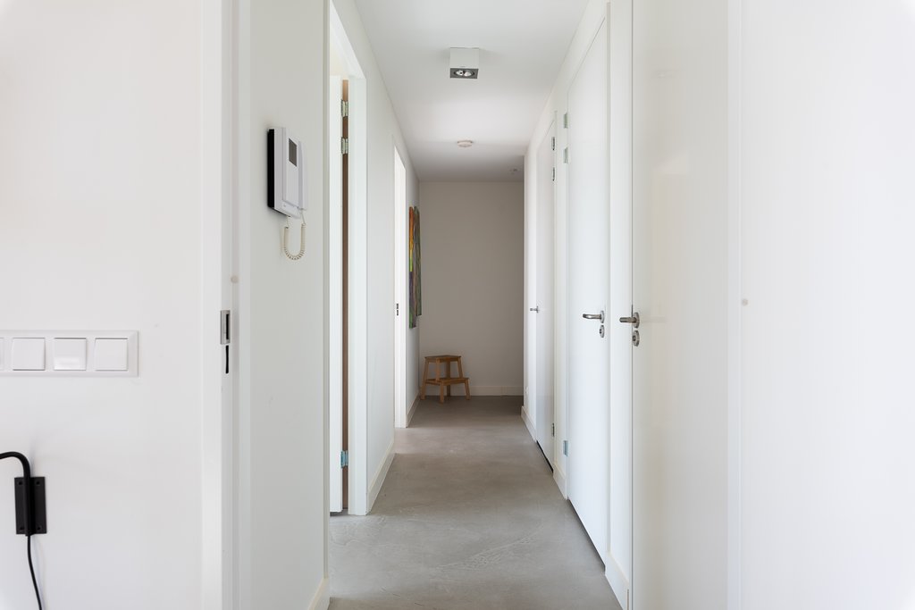 Hoofdingang, lift naar de 4e verdieping, hal. De open keuken met kookeiland is voorzien van diverse inbouwapparatuur waaronder een combi oven / magnetron, inductie kookplaat, vaatwasser, koelkast en vriezer. De royale hoofdslaapkamer is voorzien van veel kastruimte, vanuit de tweede kleinere (gast) slaapkamer is er toegang tot het balkon welke is gelegen op het noorden/oosten. Er is een separate wasruimte met wasmachine en droger, apart toilet, moderne badkamer met douche en dubbele wastafel. Tevens is er een aparte opberg box in de kelder van het gebouw.