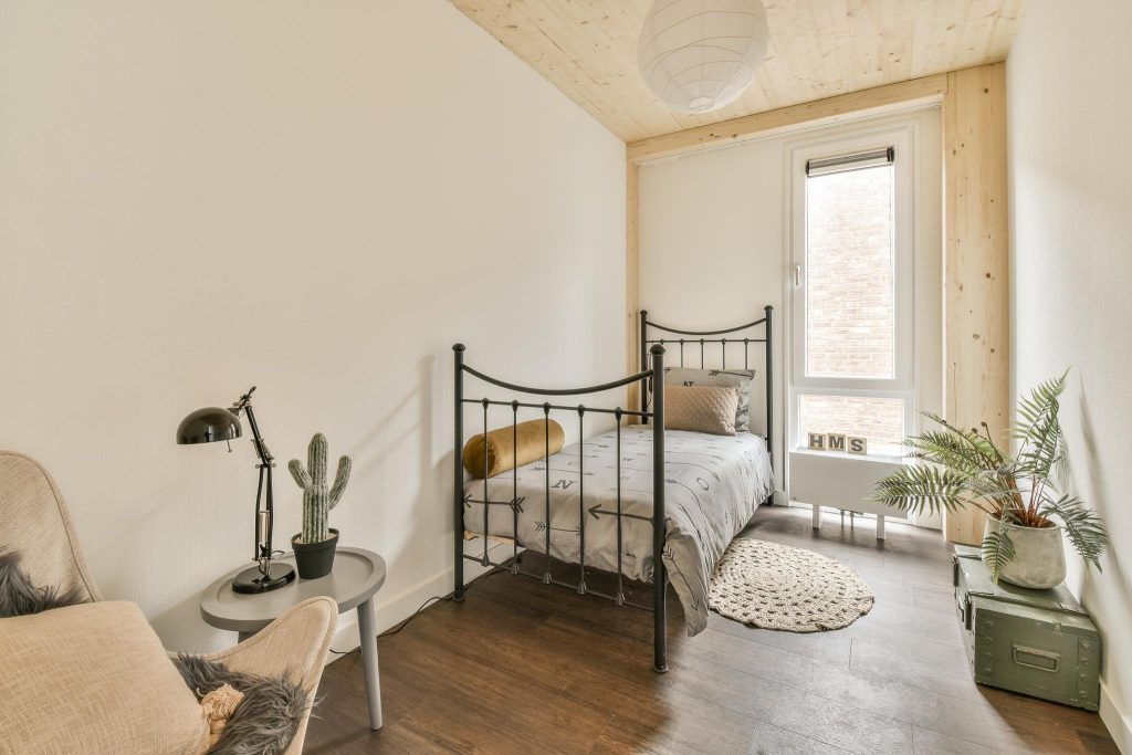 – Gestoffeerd met vloer, behang, gordijnrails. Zonder verlichting, gordijnen en meubilair;