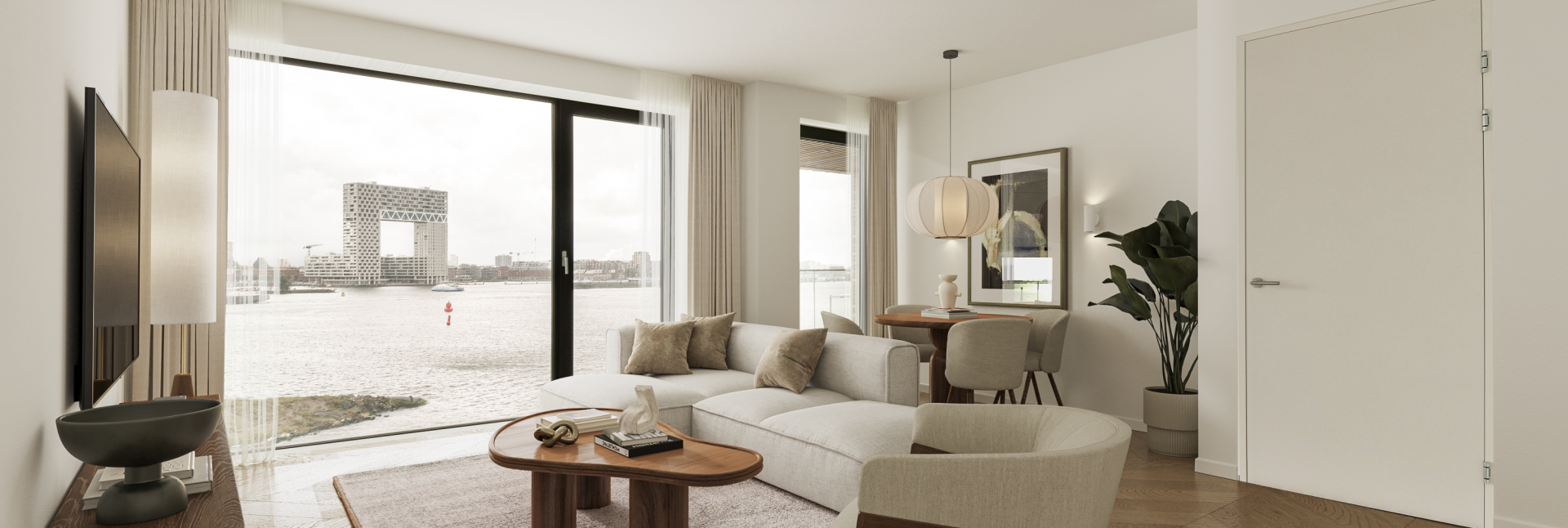 THIS. is gelegen in het opkomende Buiksloterham en heeft een ideale ligging aan het IJ. Het project omvat 69 koopappartementen, variërend van studio’s tot een penthouse.