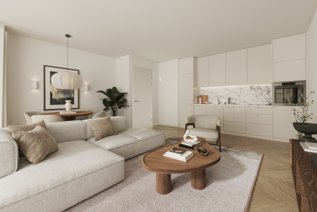 De appartementen zijn slim ingedeeld, waarbij grote raampartijen voor veel natuurlijk licht zorgen.