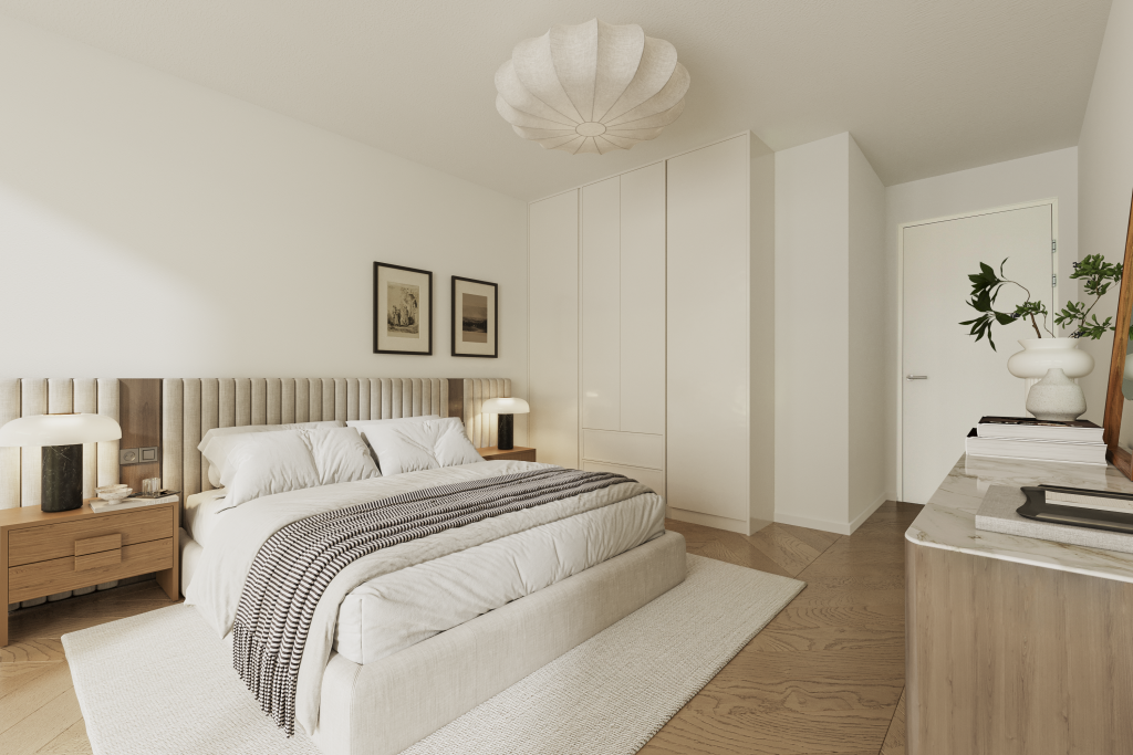 De appartementen zijn slim ingedeeld, waarbij grote raampartijen voor veel natuurlijk licht zorgen.