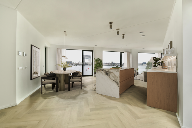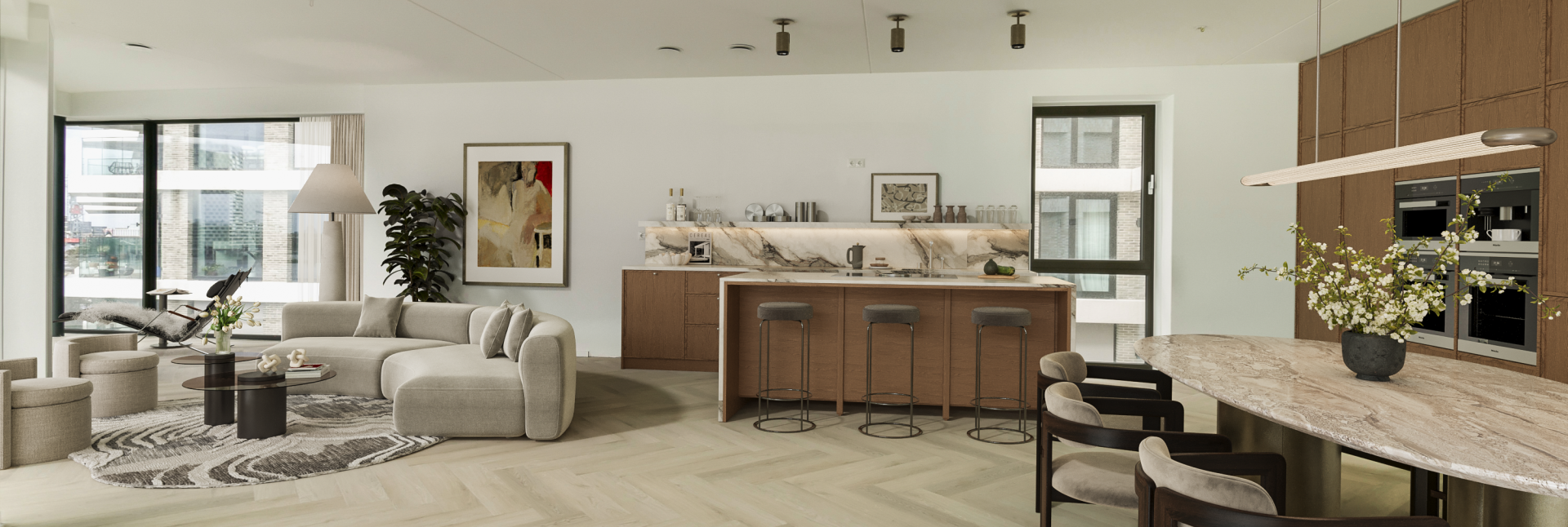 THIS. beschikt over een aantal driekamerappartementen gelegen in de punt, van de begane grond tot en met de zevende verdieping. Elk met een eigen buitenruimte. Dit specifieke appartement in de punt is gelegen op de vierde verdieping is beschikbaar voor 1.260.000 EUR. Deze v.o.n. prijs is inclusief afgekochte erfpacht voor 50 jaar. Hierdoor betaal je geen jaarlijkse canon aan de gemeente. Je hebt bij dit vijfkamerappartement de mogelijkheid om een parkeerplaats af te nemen.