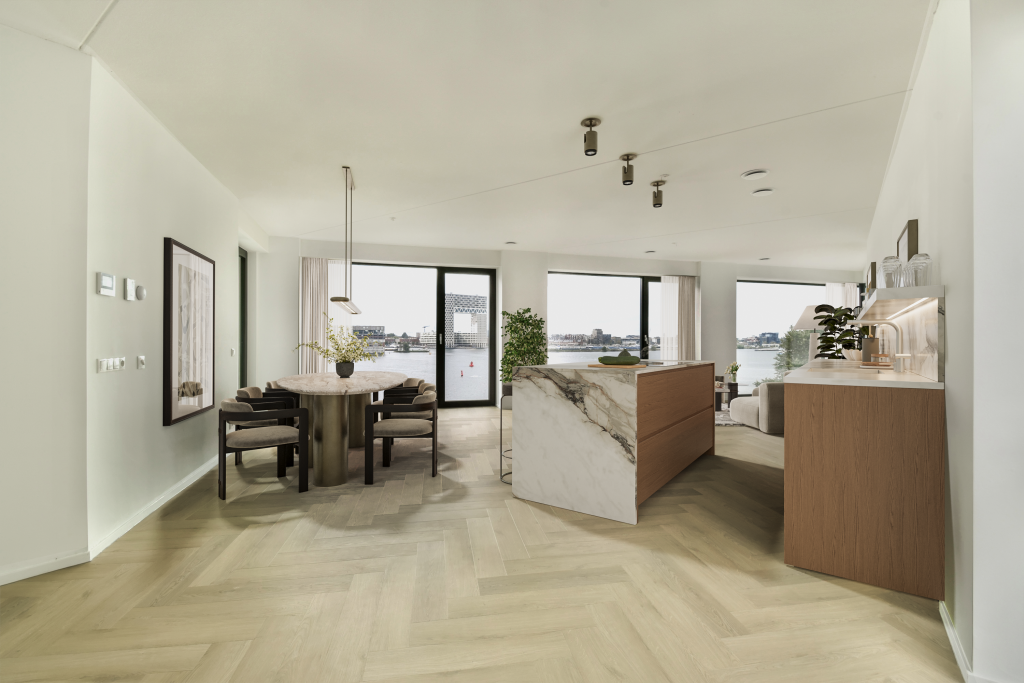 THIS. beschikt over een aantal driekamerappartementen gelegen in de punt, van de begane grond tot en met de zevende verdieping. Elk met een eigen buitenruimte. Dit specifieke appartement in de punt is gelegen op de vierde verdieping is beschikbaar voor 1.260.000 EUR. Deze v.o.n. prijs is inclusief afgekochte erfpacht voor 50 jaar. Hierdoor betaal je geen jaarlijkse canon aan de gemeente. Je hebt bij dit vijfkamerappartement de mogelijkheid om een parkeerplaats af te nemen.