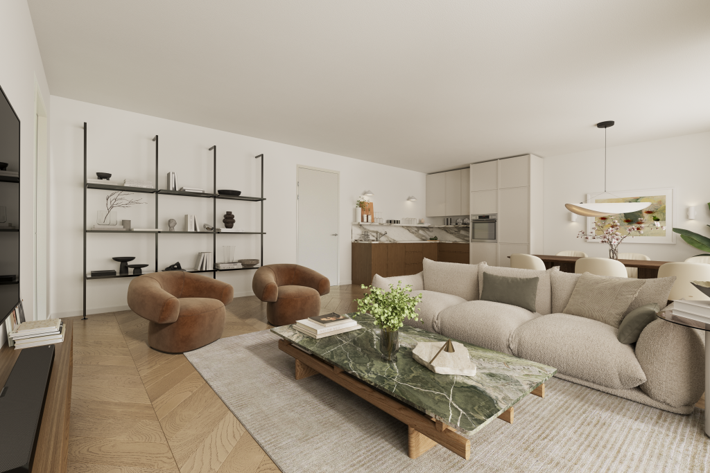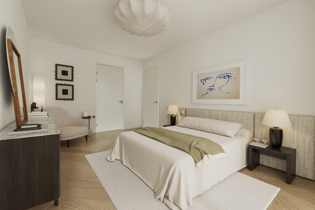De appartementen zijn slim ingedeeld, waarbij grote raampartijen voor veel natuurlijk licht zorgen.