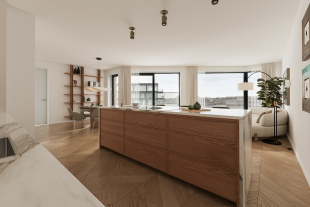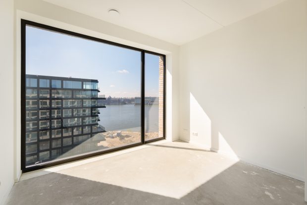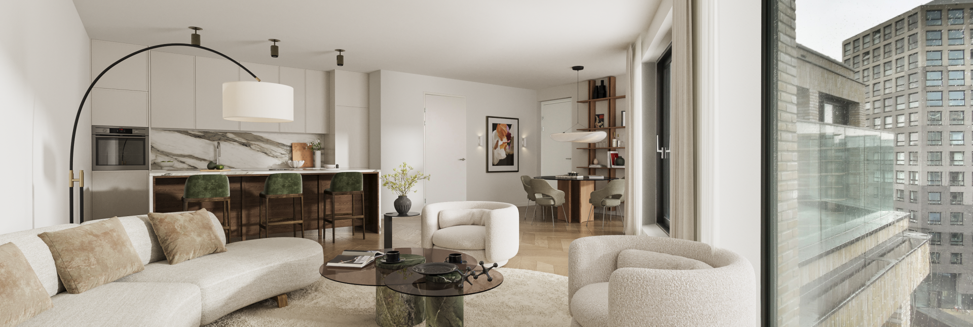 De appartementen zijn slim ingedeeld, waarbij grote raampartijen voor veel natuurlijk licht zorgen.