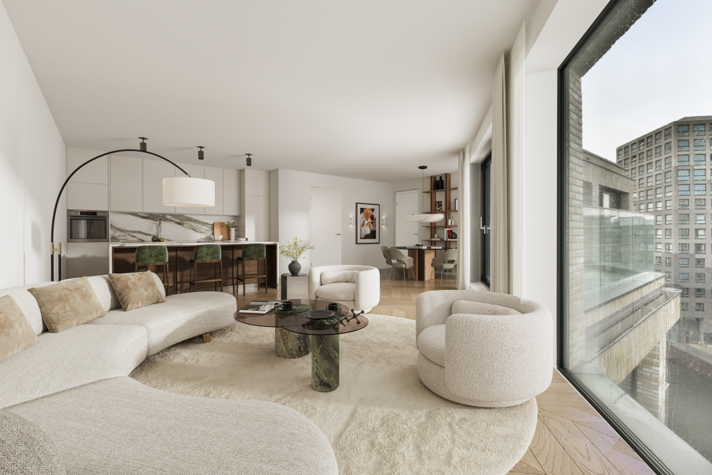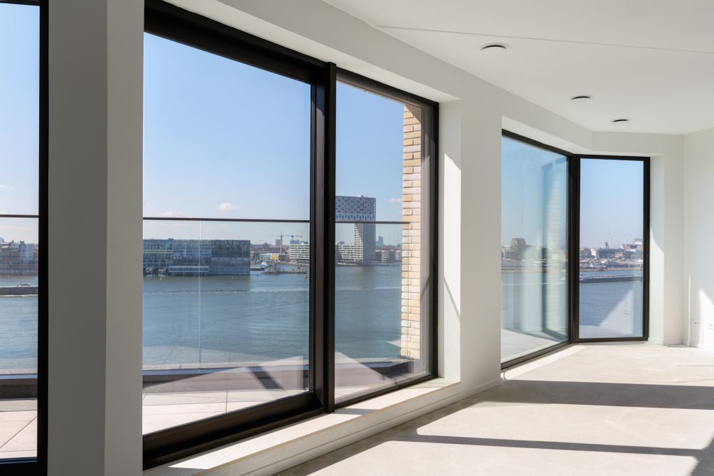 De appartementen zijn slim ingedeeld, waarbij grote raampartijen voor veel natuurlijk licht zorgen.