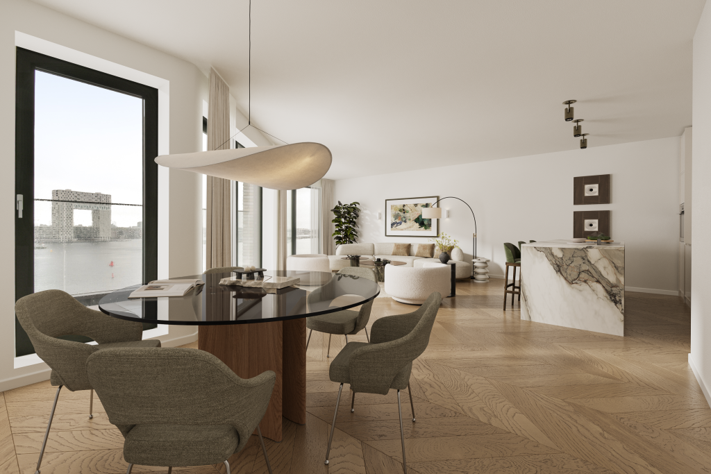 Bij THIS. is er 1 stijlvol en ruim vijfkamerappartement van 132 m2 met een eigen buitenruimte op de zevende verdieping. Dit vijfkamerappartement is beschikbaar voor 1.575.000 EUR. Deze v.o.n. prijs is inclusief afgekochte erfpacht voor 50 jaar. Hierdoor betaal je geen jaarlijkse canon aan de gemeente. Je hebt bij dit vijfkamerappartement de mogelijkheid om een parkeerplaats af te nemen.